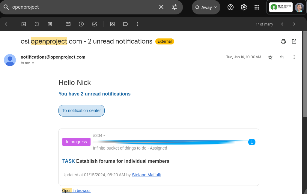 With OpenProject, the OSI team can navigate their extensive to-do list, particularly during the Board of Directors elections, ensuring tasks are assigned, deadlines are met, and collaboration is streamlined for organizational success.