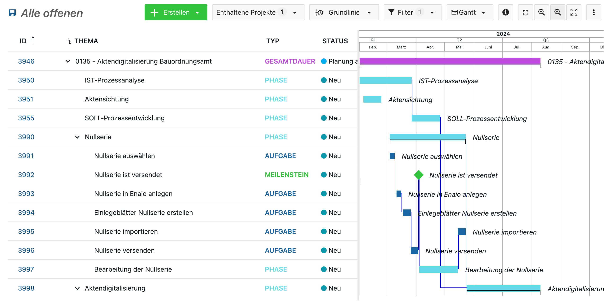 The overall project planning, including dependencies, is clearly displayed in a Gantt chart – essential for project managers and project portfolio managers.