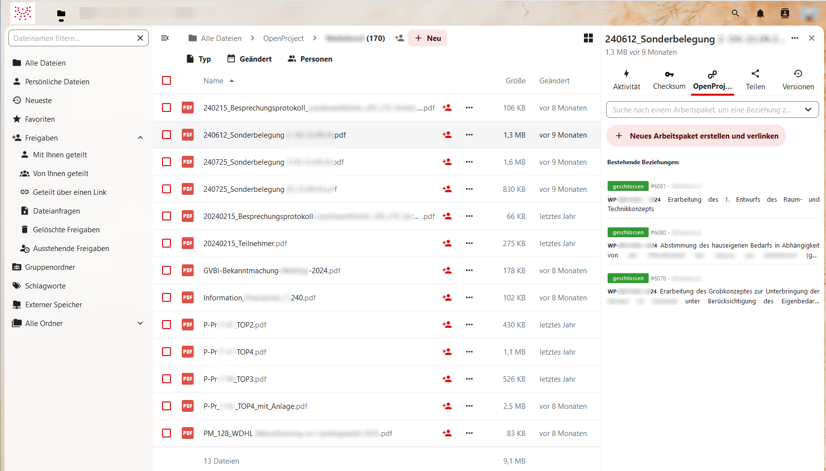 Relevant documents for a task or project can be directly linked from Nextcloud and are easily accessible.